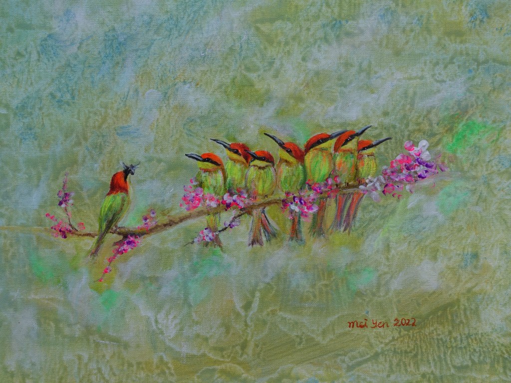 Misty, (2017), 32cm x 32cm, Acrylic on CanvasSolitaire, (2024), 43cm x 53cm, Acrylic on CanvasAll In The Family, (2022), 38cm x 48cm, Acrylic on CanvasTogether, (2019), 29cm x 29cm, Acrylic on Canvas